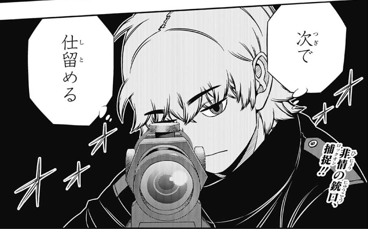動揺が走るところでトリガーの明かりを狙ったユヅルによって修の右腕を撃ち落とされてしまい……。