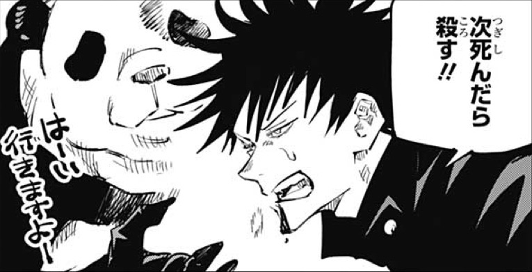 最も虎杖と伏黒の場合は後の会話もそんな感じですが、少年院の特級の時に任せて戦略的撤退を余儀なくされてしまったせいで、一時的にとはいえ虎杖が死んでしまった事を気にかけているようでもあるのですが。