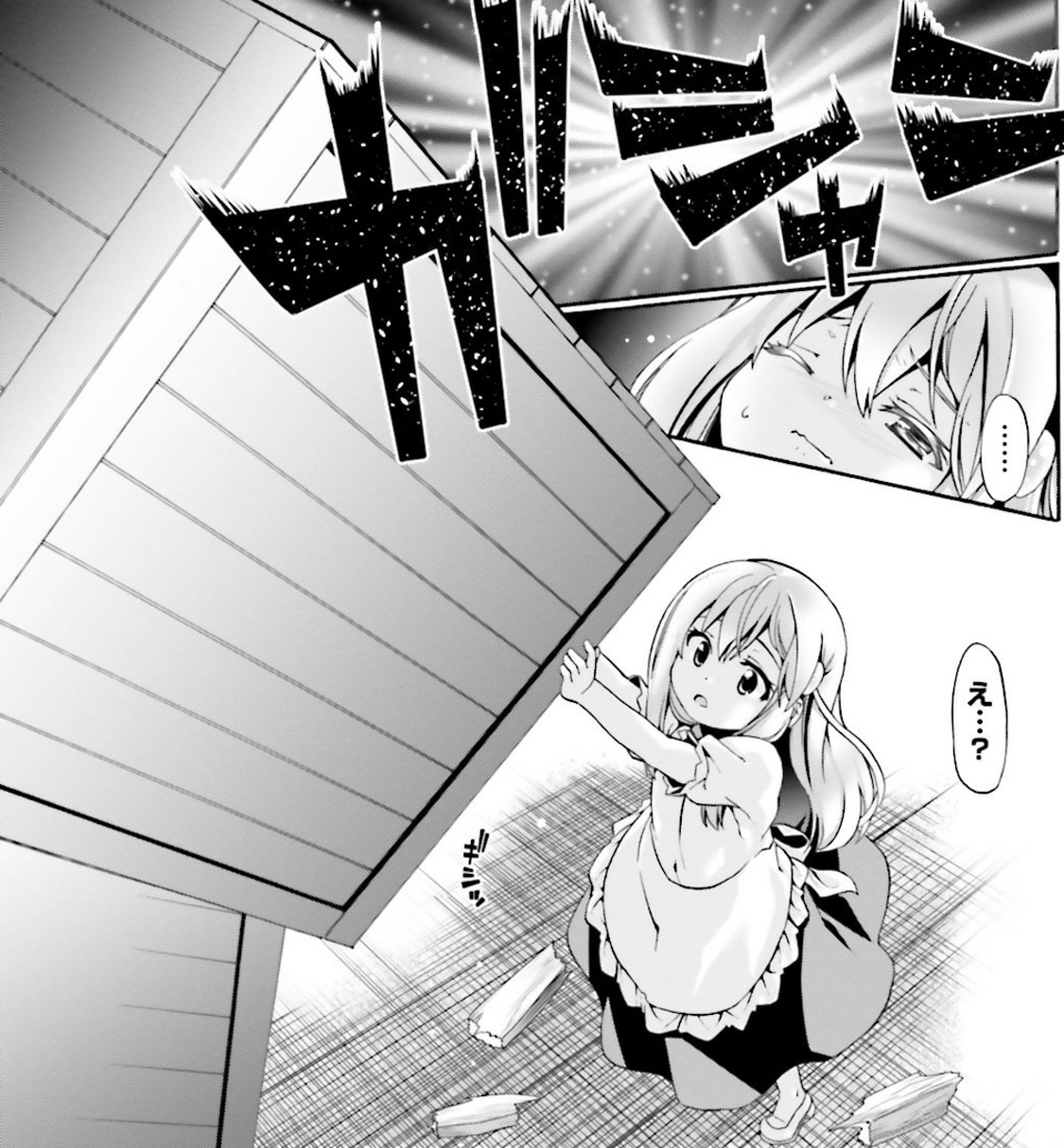 最初に崩れ去る荷物から身を守ろうと能力を発揮してしまった時、そのパワーを目撃してしまったテュッテが化け物と怖がってしまわないかと逆に怖がってそっけない態度をとってしまうメアリィでしたが……まさかのオチがなんだか笑えてしまいます。