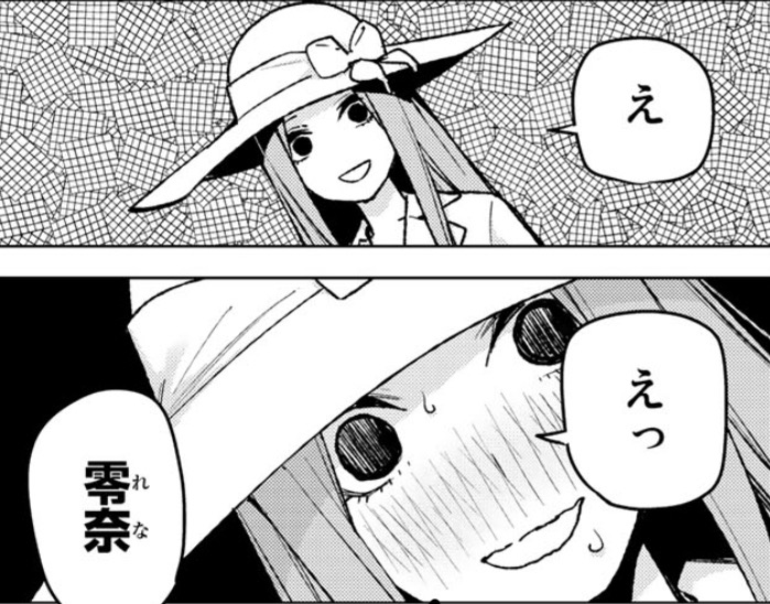きっと多くの人が零奈と同じ感想を抱いた事でしょうが、「誰が誰とか何度めだよ」というフータローの反論もごもっともすぎるという……。偽五月騒動に一花のやらかしとか記憶に新しい上にフータローから逃げる時の常套手段になってる気もするしさもありなん。