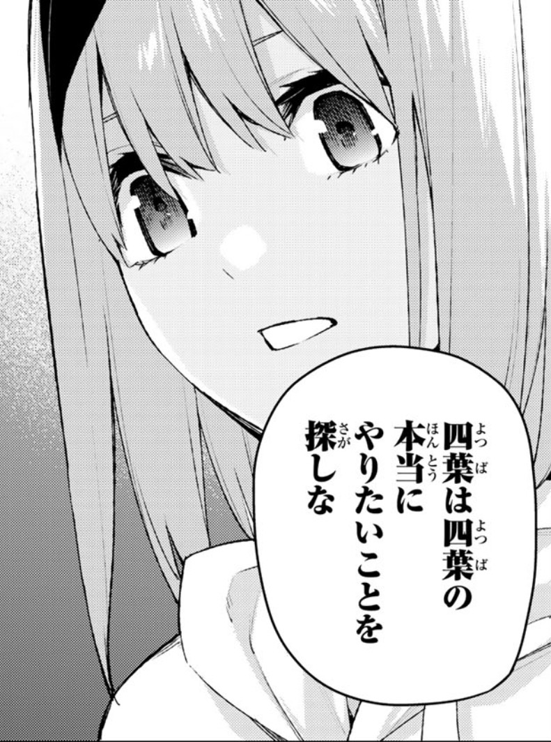 自分のやらかしてしまった一件からずっと姉妹たちのために頑張ってきた四葉ですが、そろそろ自分のために動いても良いのではないでしょうか。