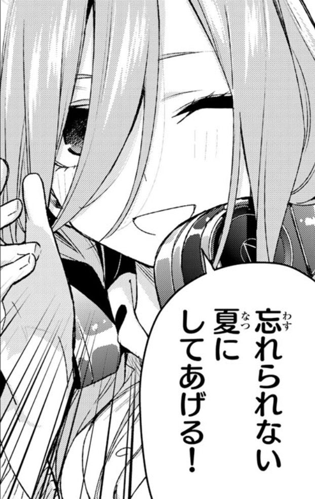 それでも今後の話の中で学校イベントへの参加は難しいでしょうし、プライベートの際も一花ただ一人が都合により不在となる口実はできたので出番は減ってしまうことになるでしょう。