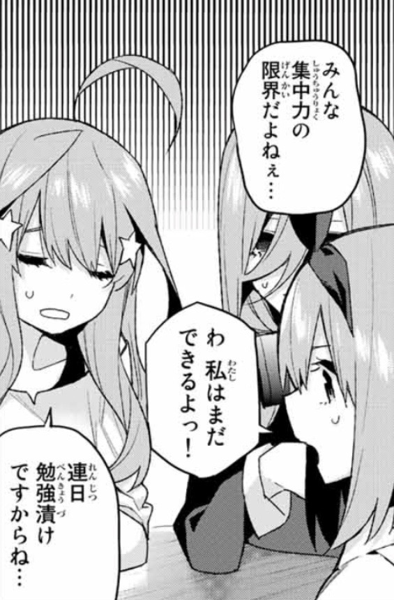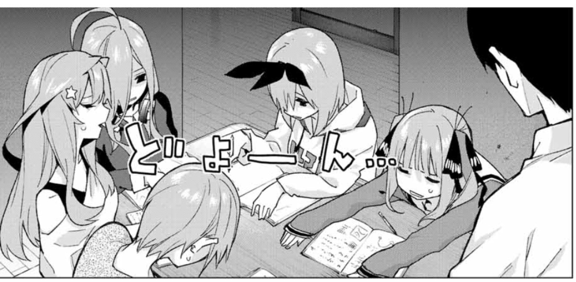 なかなか覚えられないようでどんよりしてしまう姉妹たちに風太郎も彼女たちが”何がわからないのか、どう教えたら良いのか”がわからなくなってしまった様子。