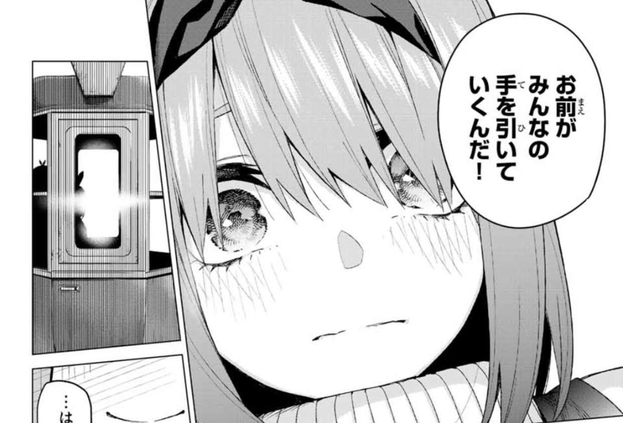 今まで迷惑をかけていただけだと思っていた自分が出来ることがあった四葉は嬉しかったのか自分が四人を合格させてみせると豪語しますが、風太郎にはツッコマれてしまう。