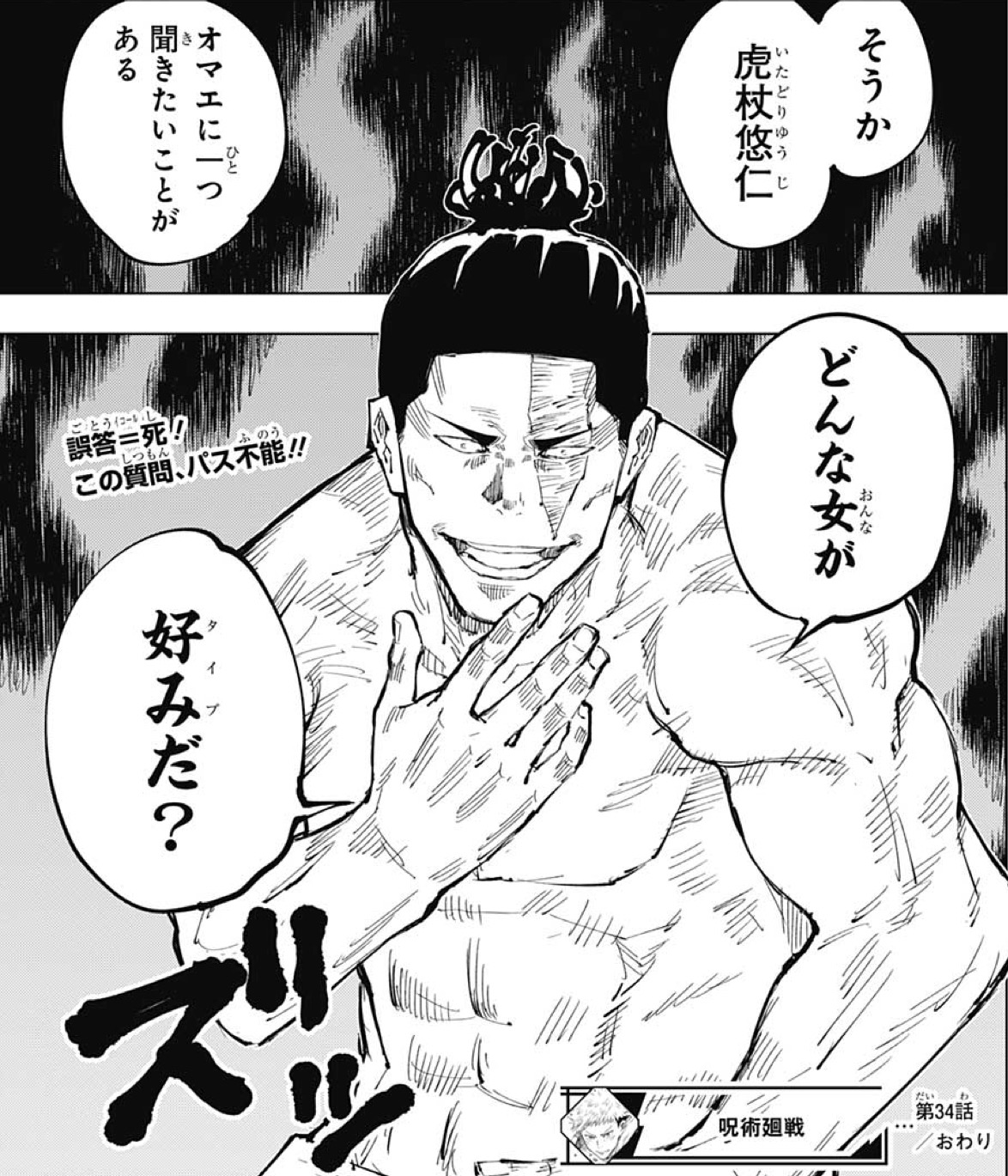 いつもの如く東堂が虎杖に女性のタイプを質問して……どう答える?