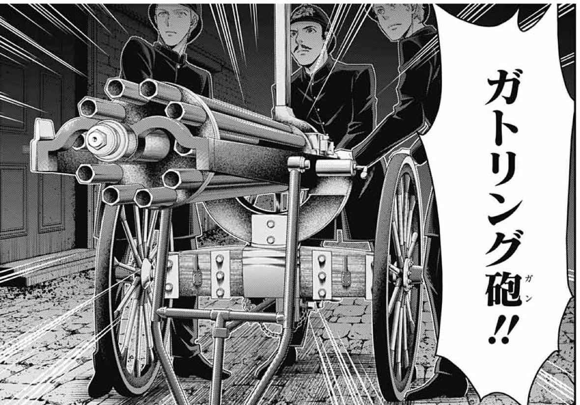 半刻が過ぎて徐々に身体が重くなって来たジャックでしたが、その前に到着した市警の秘密兵器『ガトリングガン』!