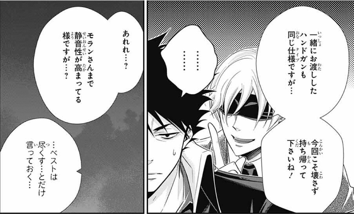 結構遠くから狙撃している気がするんですが、この正確さって流石にウィリアムが認めた仲間だということなんでしょうか。製作者のヘルダー曰く試作品の空気銃で力が足りなくて殺傷能力のないゴム弾の使用しかできないのだとか。